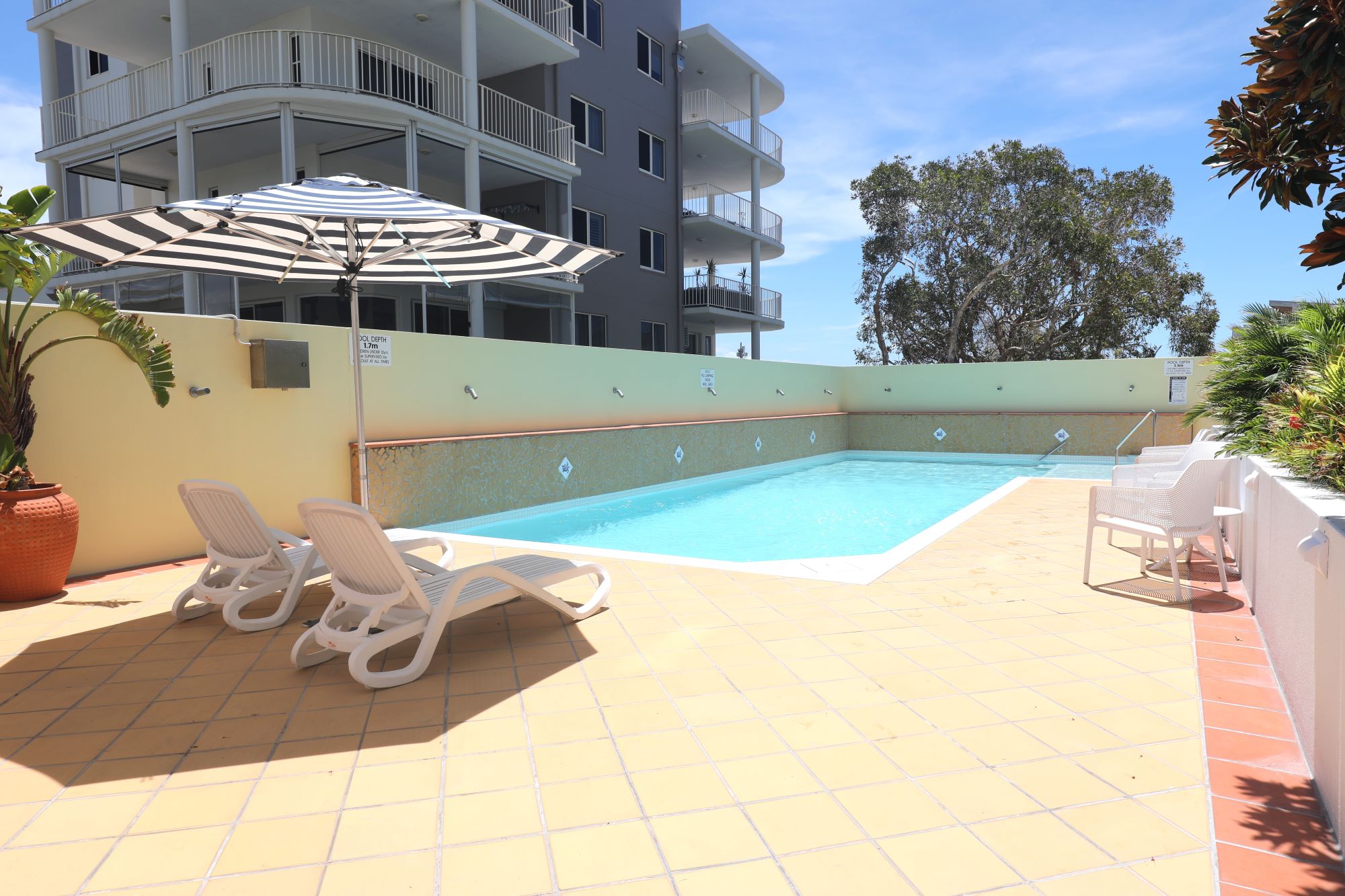In keeping with its prime beachside location, Santorini on Mudjimba will meet all your expectations for a holiday to remember. The apartments are spacious and well appointed. Santorini’s onsite facilities include a resort style heated swimming pool, half court tennis and a large BBQ & entertainment area. The resort is a non-smoking facility.